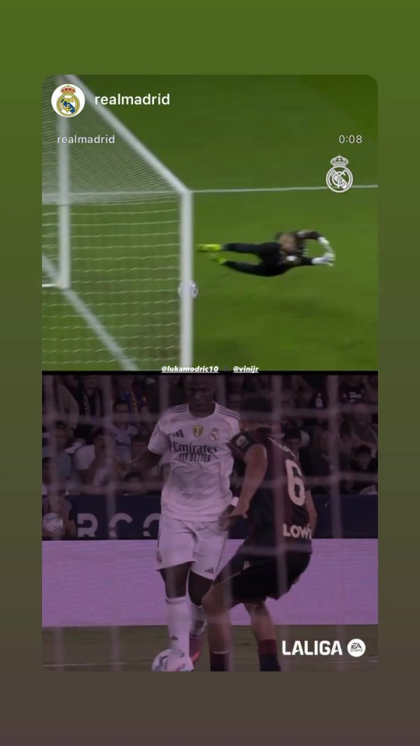 认可!莫德里奇晒自己与维尼修斯外脚背射球 对比视频9月27日讯 西甲第6轮赛事 ,维尼修斯传射建功,帮助皇马客场应战 4-1击败莱万特。 维尼修斯此役第28分钟外脚背弹射攻入一球,赛后他表示是莫德里奇教他这样射球 。 莫德里奇更新社媒动态,晒出自己与维尼修斯外脚背射球 的对比视频。