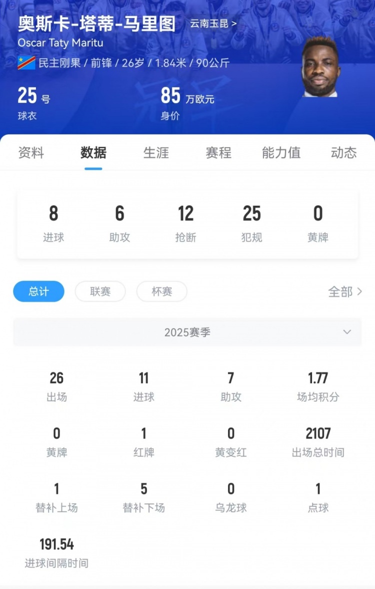 本赛季截至目前,英超免费在线高清直播奥斯卡一共出场26场,打进11球,送出7次助功 。