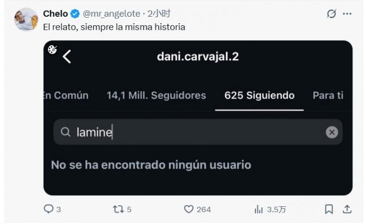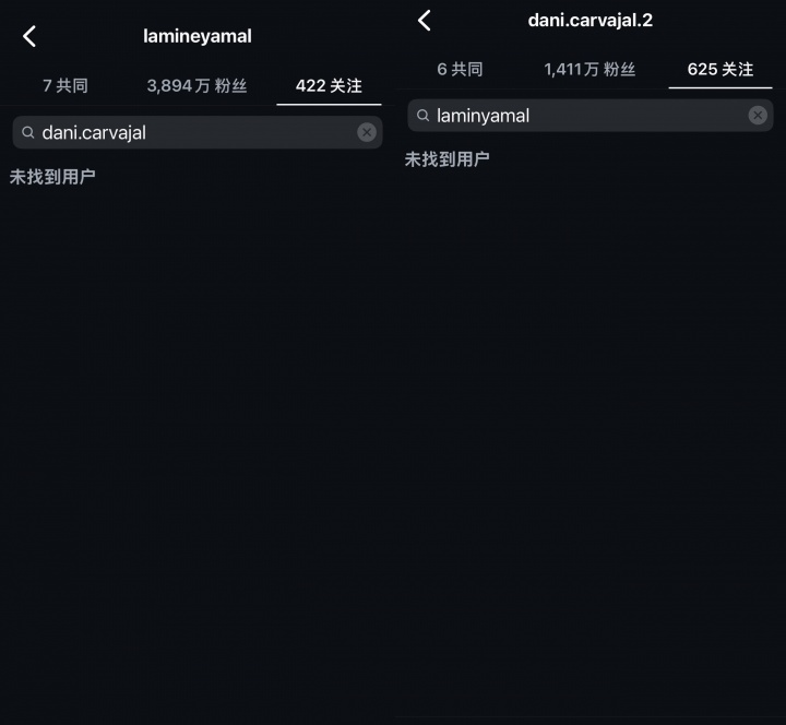 10月27日讯 今天西班牙国家德比之后,有不少球迷发文表示亚马尔取关了卡瓦哈尔,经查证目前两人确实未互相关注,但是否是因为今天两人的冲突取消关注还有待确认。