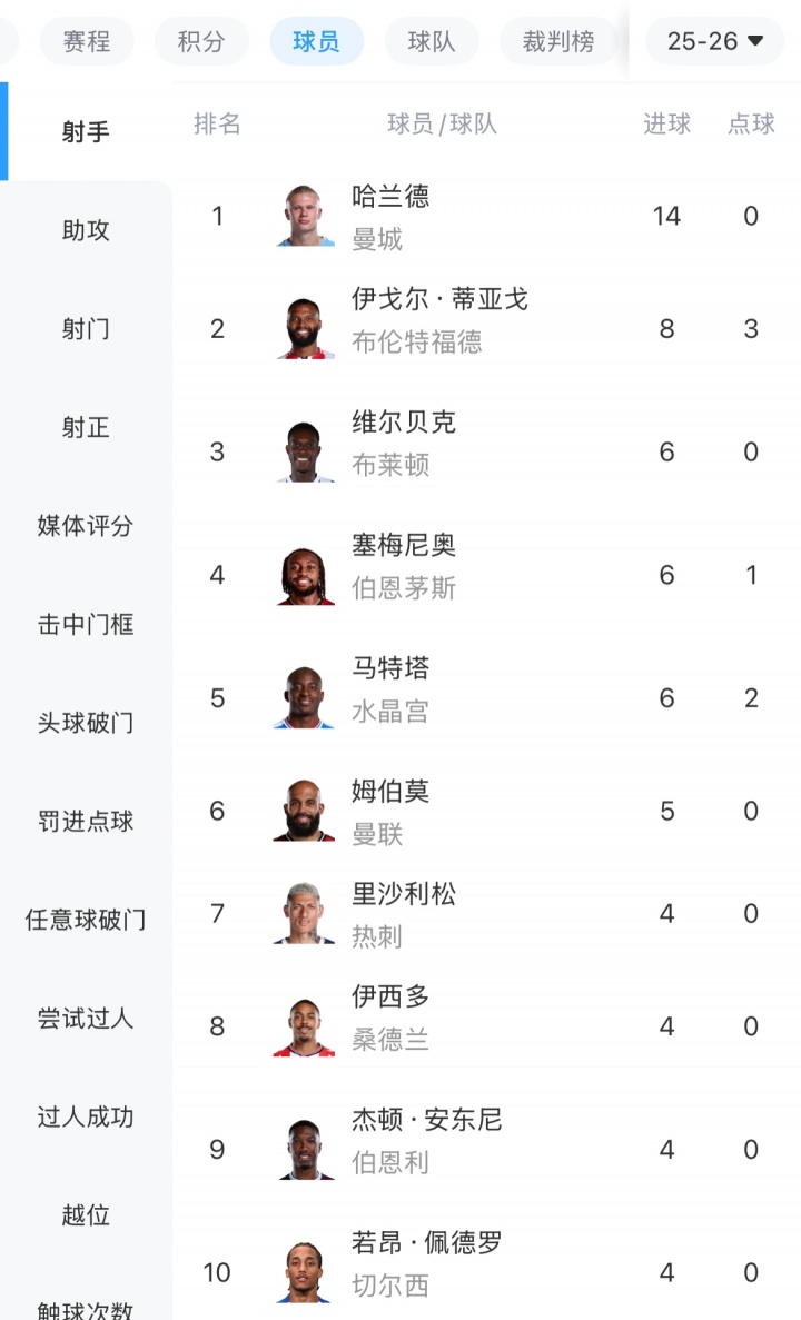 英超进行到第11轮,英超直播哈兰德14球领跑射手榜,领跑 第二名的伊戈尔·蒂亚戈6球。