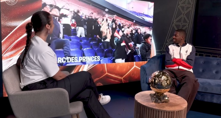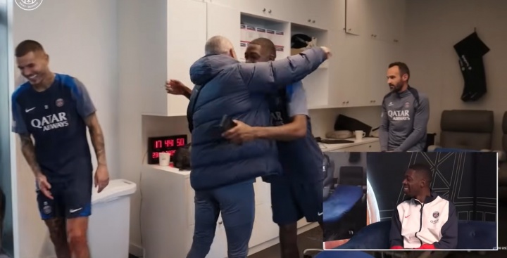 登贝莱:嗯,就像我从一开始就说的,他信任我。他对我好得难以置信,而且就像我说的,他唱那首"奥斯曼金球奖"已经唱了三个月了,每次见到我都唱,所以这很让人开心。他从一开始就给予我的所有信任,我努力在运动活动 场 上回报。